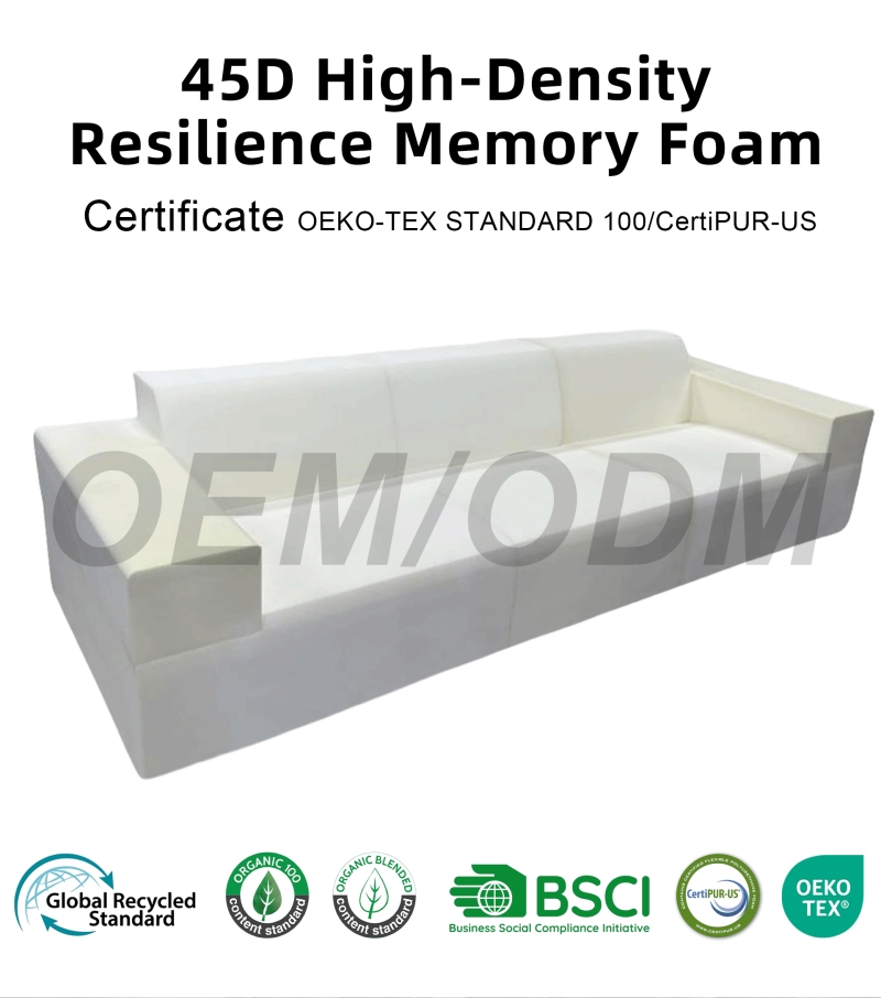 Naša 45D High Density Resilience Memory Foam predstavuje ideálnu rovnováhu medzi komfortom, podporou a dlhou životnosťou. Vďaka svojej vysokej hustote (45 kg/m³) a odolnej štruktúre je tento materiál navrhnutý pre maximálnu záťaž a mimoriadne dlhodobé používanie – bez straty tvaru alebo pohodlia.