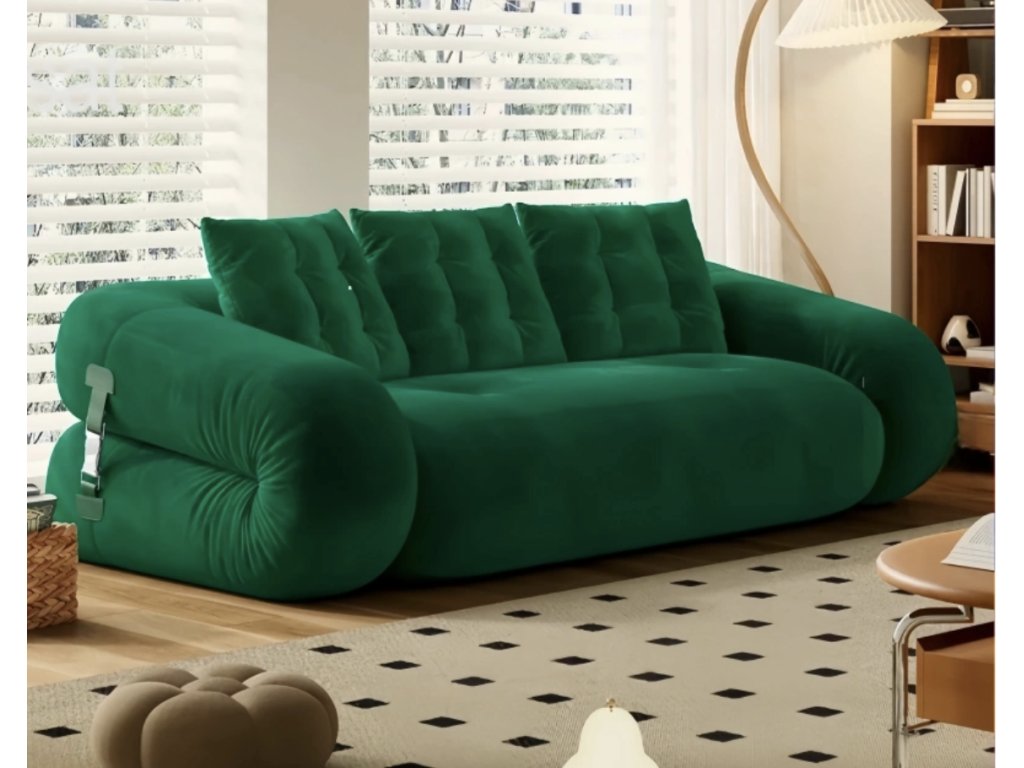 Sedačka BOLZANO je odvážny a zároveň nadčasový kúsok, ktorý sa dokonale prispôsobí tvojim potrebám. Jej ikonický tvar s objemnými valcovými opierkami a charakteristickými pásmi pôsobí luxusne a originálne. Vďaka premyslenej rozkladacej funkcii sa zmení na veľkorysé lôžko – ideálne na oddych, hostí alebo pohodové večery pri filme.
