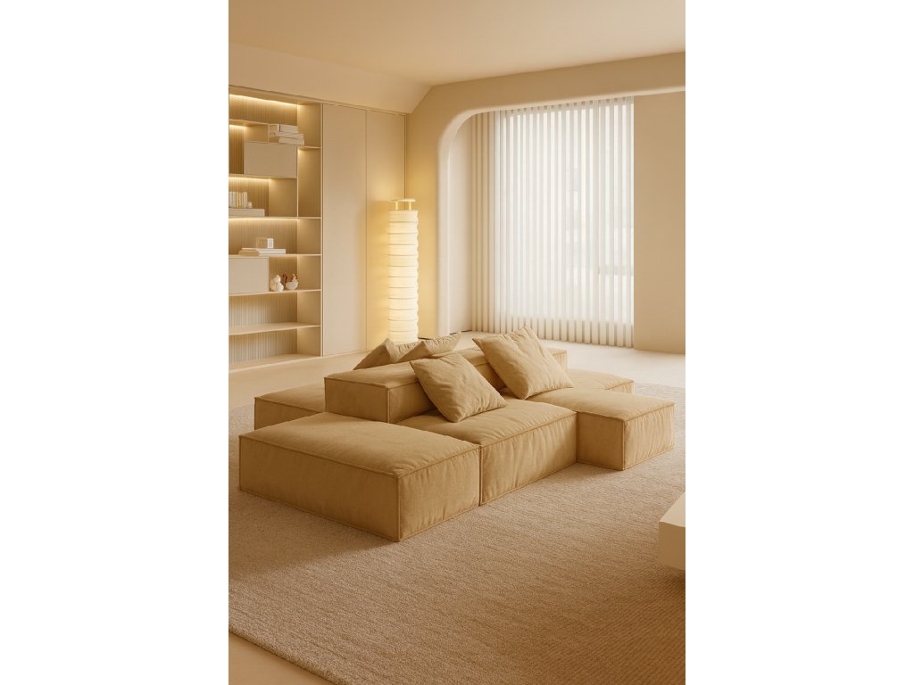 Táto elegantná a minimalistická sedacia súprava je ideálnym riešením pre moderný interiér. Vďaka svojmu modulovému systému si ju môžete vyskladať presne podľa svojich potrieb – ako priestranné rodinné sedenie, leňošku alebo útulný kút na oddych.